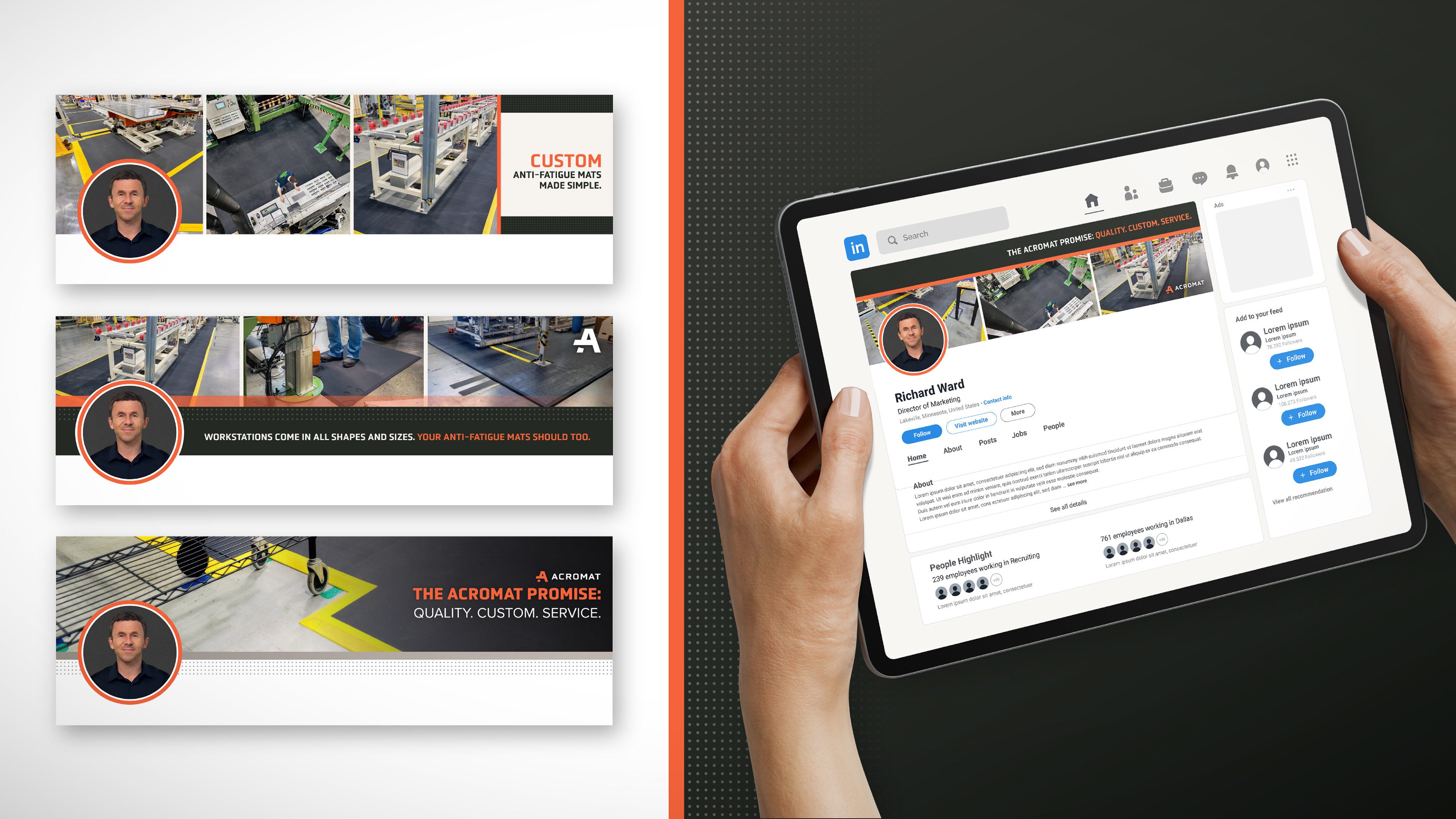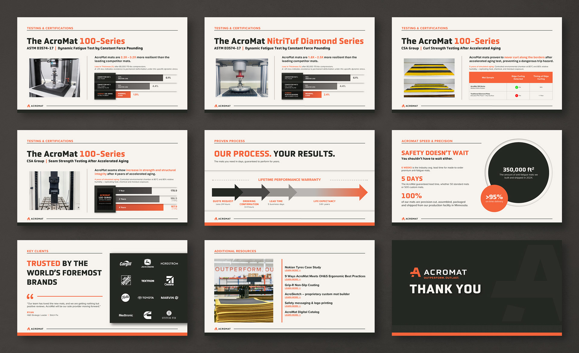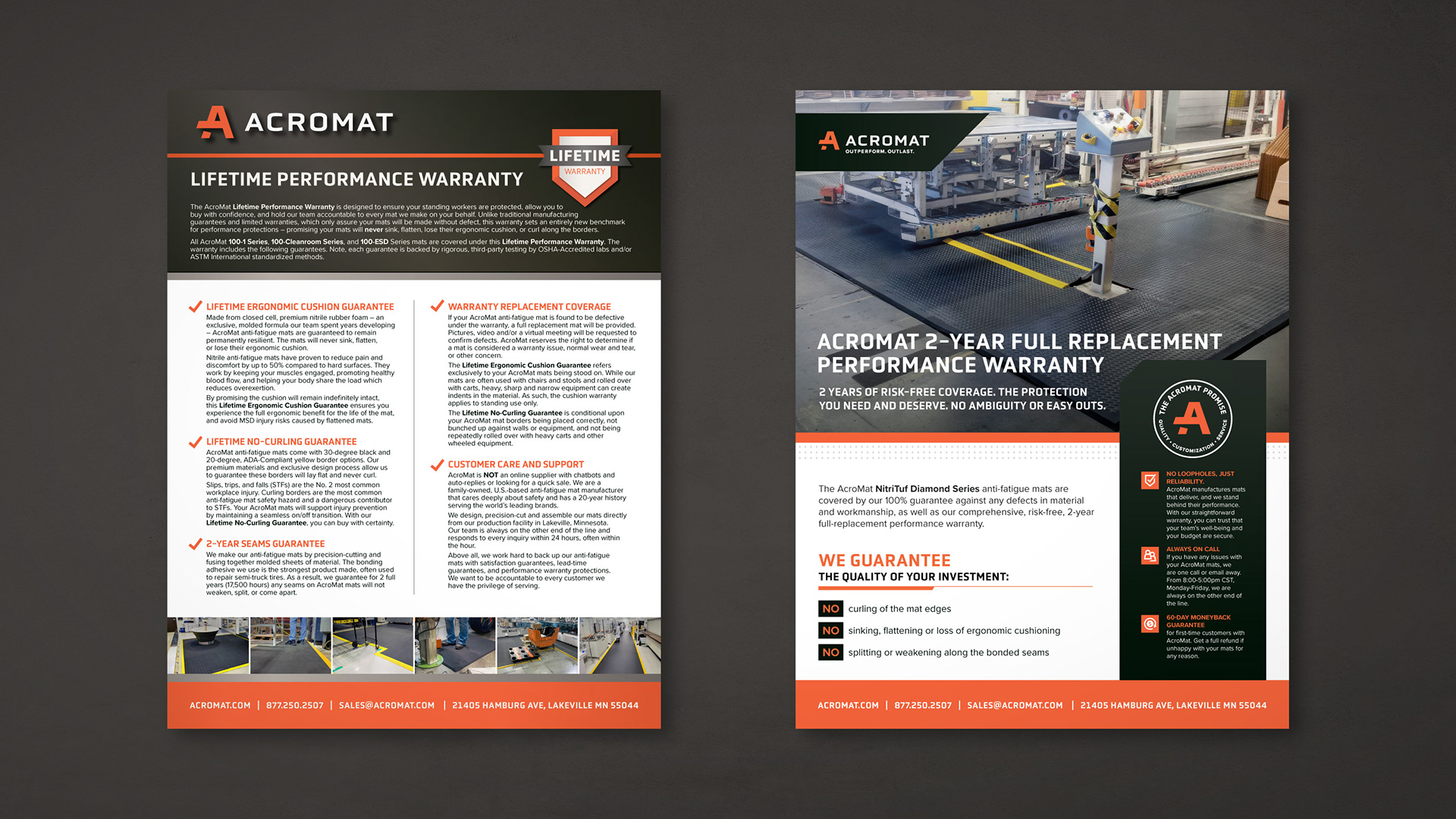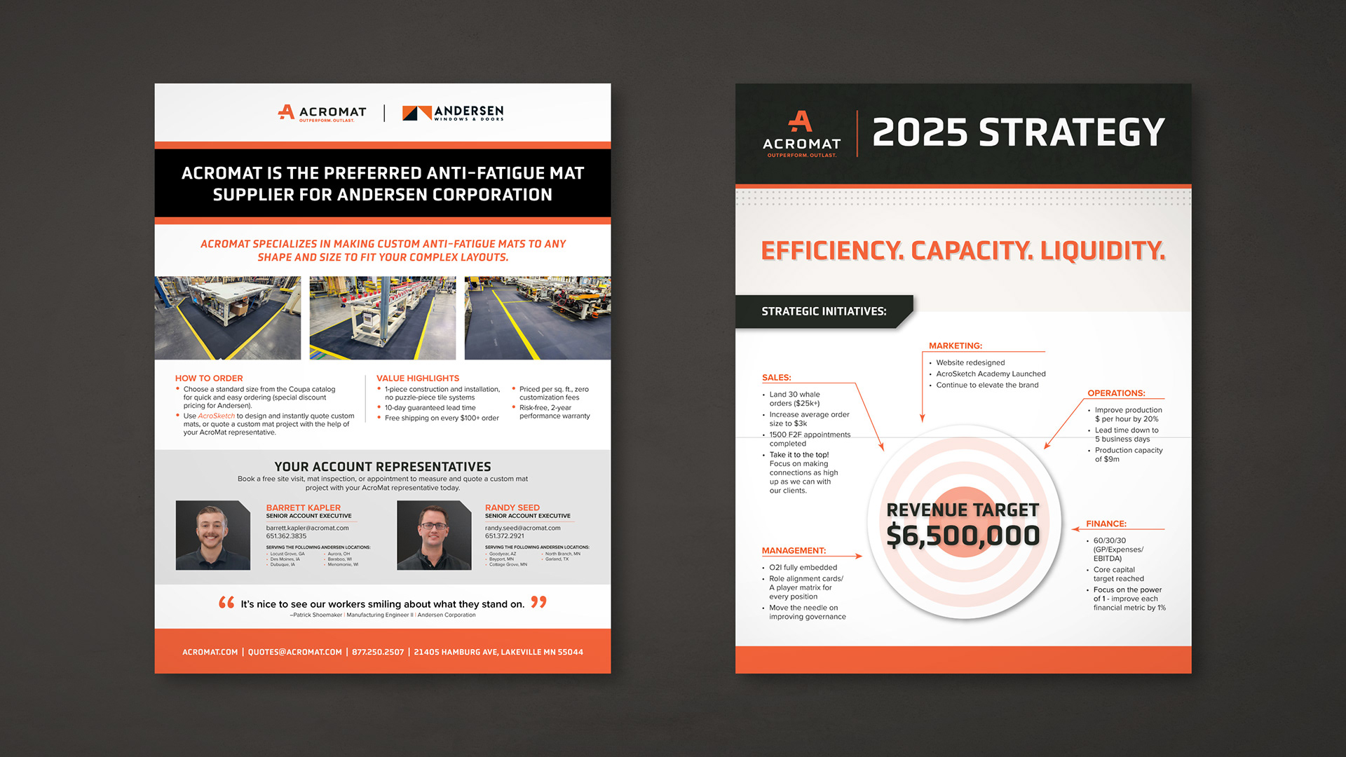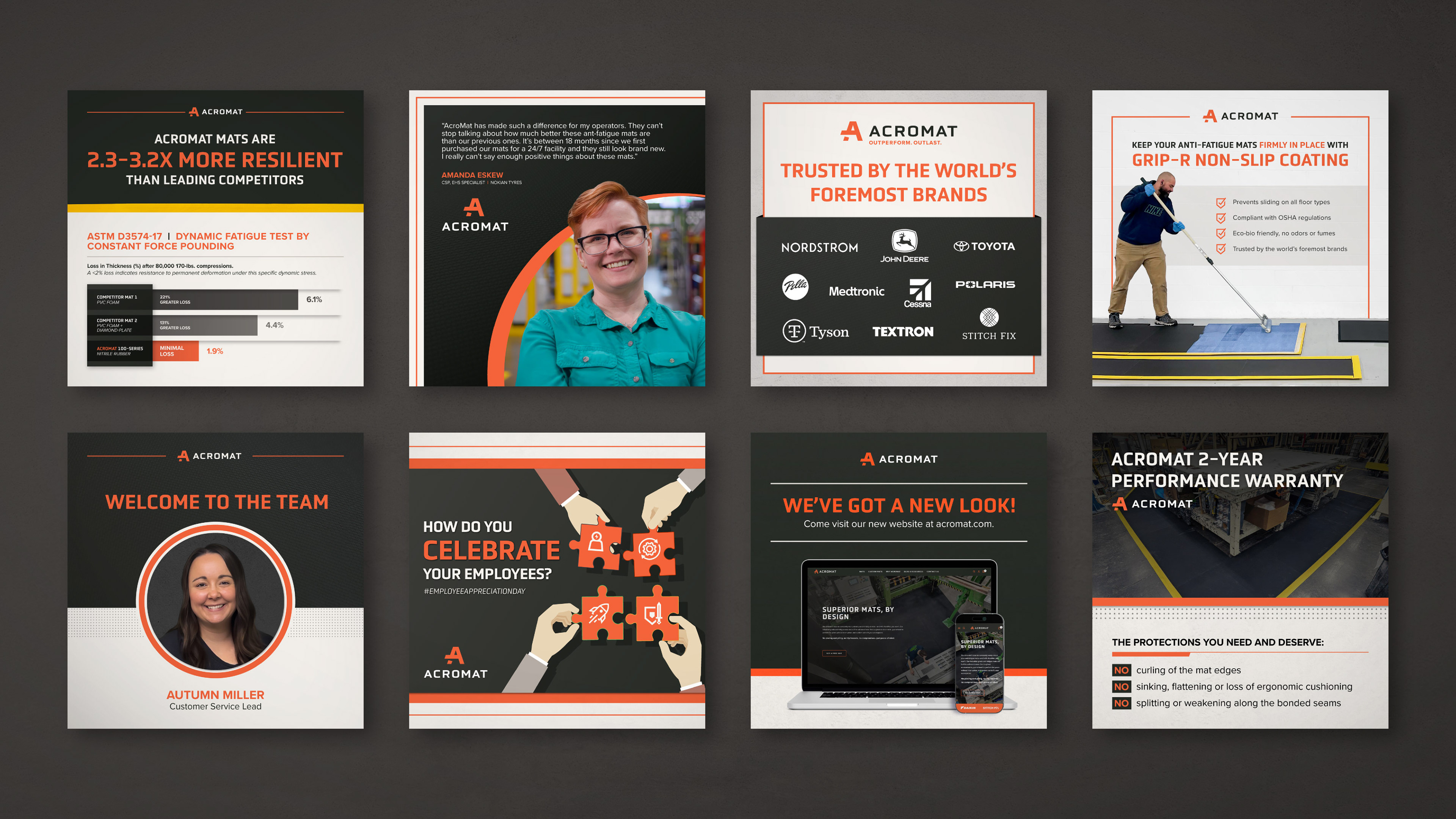 AcroMat is a B2B anti-fatigue mat manufacturer based in Minneapolis, Minnesota that makes industrial-grade, standard-size and custom mats for standing workers in manufacturing, food processing, retail, and cleanroom environments. Their clientele includes some of the world's foremost brands, including Boeing, Tesla, Nordstrom, Toyota, John Deere, and Anderson Windows.